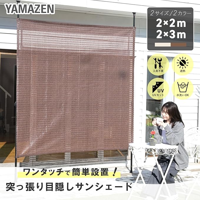 山善(YAMAZEN) 突っ張り目隠しサンシェード 日除け シェード 屋外 2 2m 遮光率約76% 紫外線遮蔽約85% 水洗い可能 SPSH-2020 ブラウン