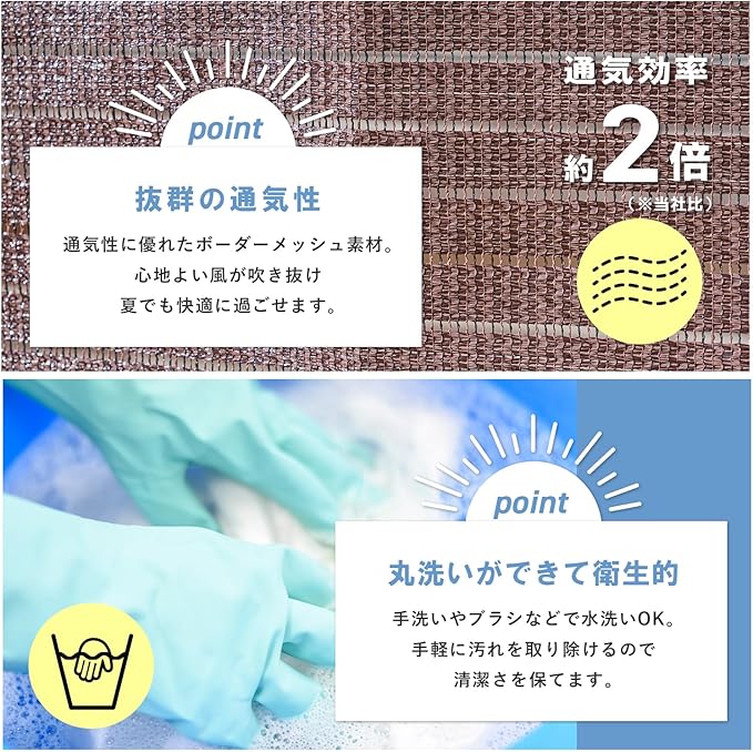 ●ボーダーメッシュで通気性が抜群です。心地よい風とやわらかな光を取り込むのでリラックスした時間を過ごせます。