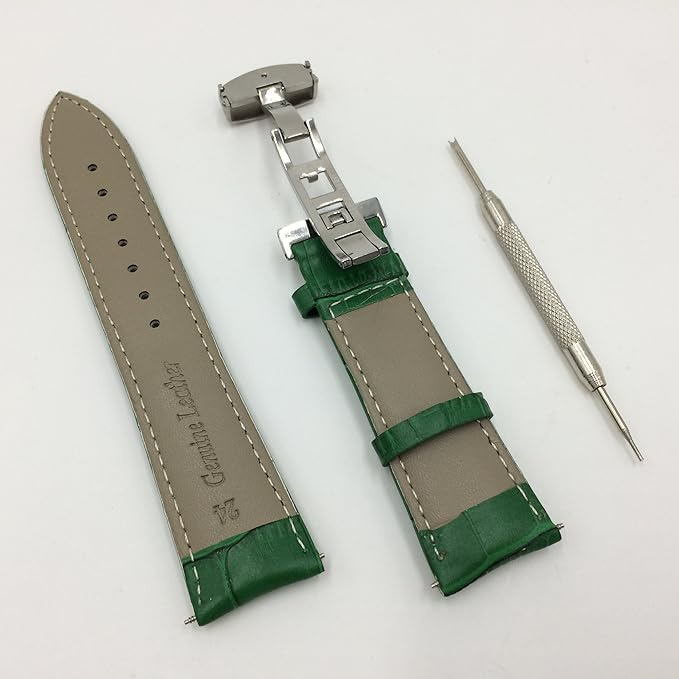 腕時計 バンド 本革 Dバックル 観音開き クロコダイル 型押し ベルト ばね棒はずし 付 (18,グリーン 20mm)