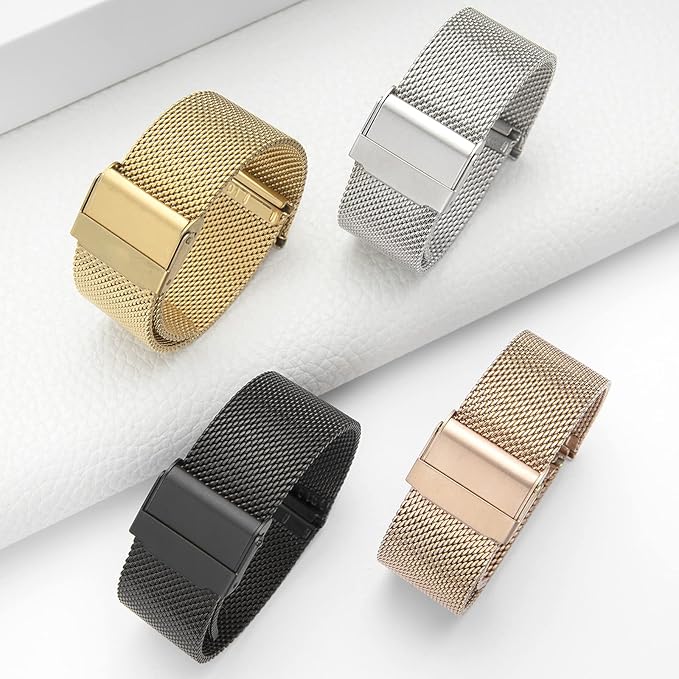 【 スマートウォッチ対応】複数のサイズとカラーで様々なタイプの腕時計に対応。Huawei、Samsung Galaxy &Gear、Fossil Gen4、Moto、LG、Fossil Q、Pebble timeなどの多くのスマートウォッチにもフィットします。このメッシュストラップは、スタイリッシュで肌に優しく、どんな場面にも適しており、あなたへの素晴らしい贈り物です。ご注文の前に、ストラップが時計ケースに接する部分の幅を測ってください。