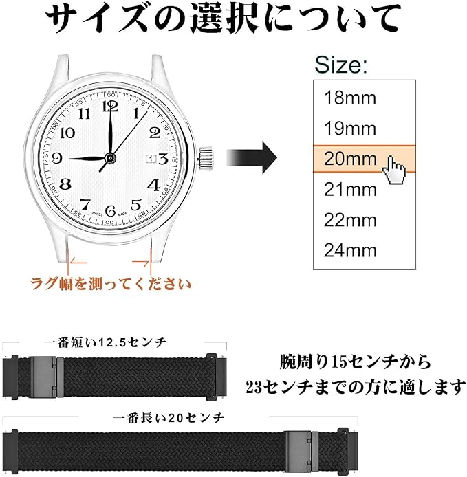 【対応機種】ラグ幅18mm/19mm/20mm/21mm/22mmの腕時計やスマートウォッチに適用します。注文する前に腕時計のラグ幅をご確認ください。