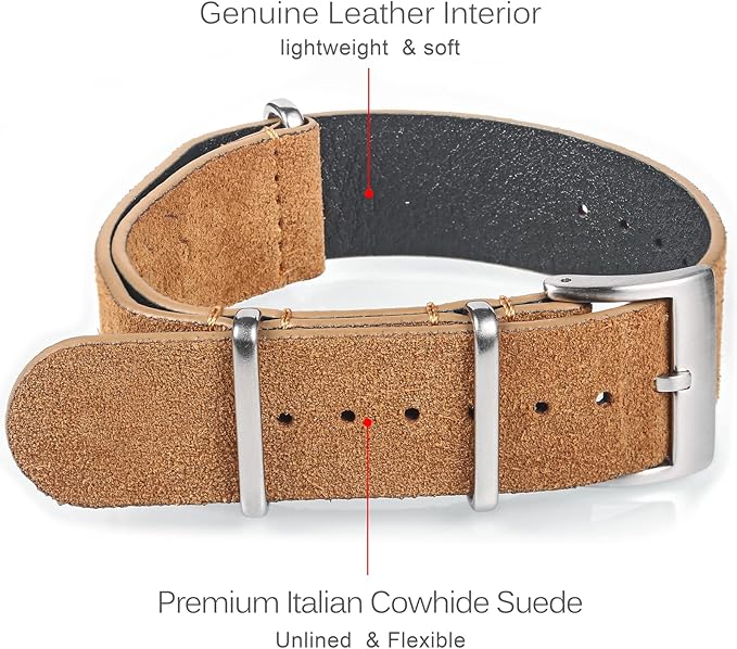【One-Piece Military Watch Strap】スエードとオイルドレザーの質感、革の色合わせ、ステッチとスチール印刷との組み合わせで、ファッショナブルで素敵な時計バンドになり、あらゆるハイエンド時計に適しています。