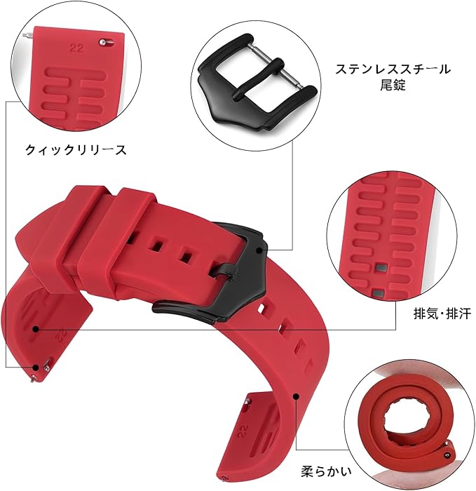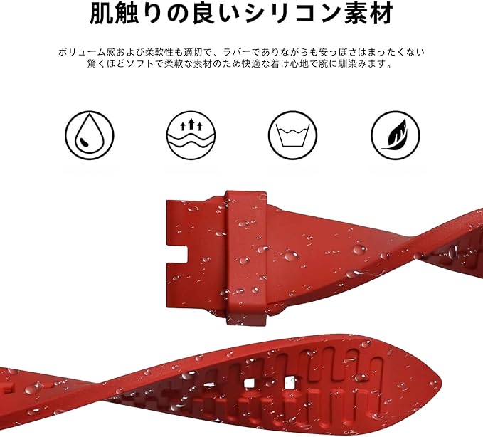 時計ベルトの装着感を重視し、手触りが良い高質シリコンで作られており、ベルトの裏面は通気・排汗の設計になっており、汗や水に濡れても乾きが早く爽やかにご利用いただけます。