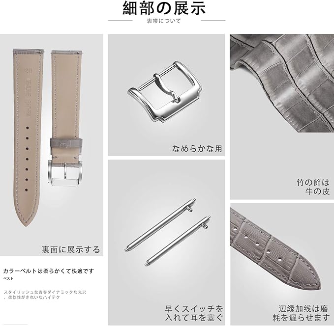 【含まれた物】レザー時計バンド(1条)、スプリングバーツール(1個)、スプリングバー(2本)、クリーニングクロス(1枚)。もしご不明点がありますなら、是非ご連絡ください。