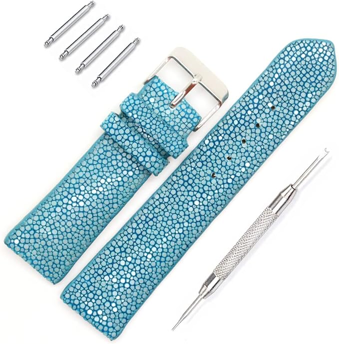 [レヴェッタ] エイ革 ガルーシャ スティングレイ 腕時計 バンド ベルト ターコイズブルー 10mm 12mm 14mm 18mm 20mm 22mm 24mm バネ棒 バネ棒外し付き [089-6stb]