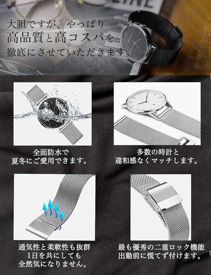 高品質なSUS316Lステンレス素材、編み網工芸、整えた網目、通気、防水、色褪せない特点です。ビジネスと私用の両方にも向けます。