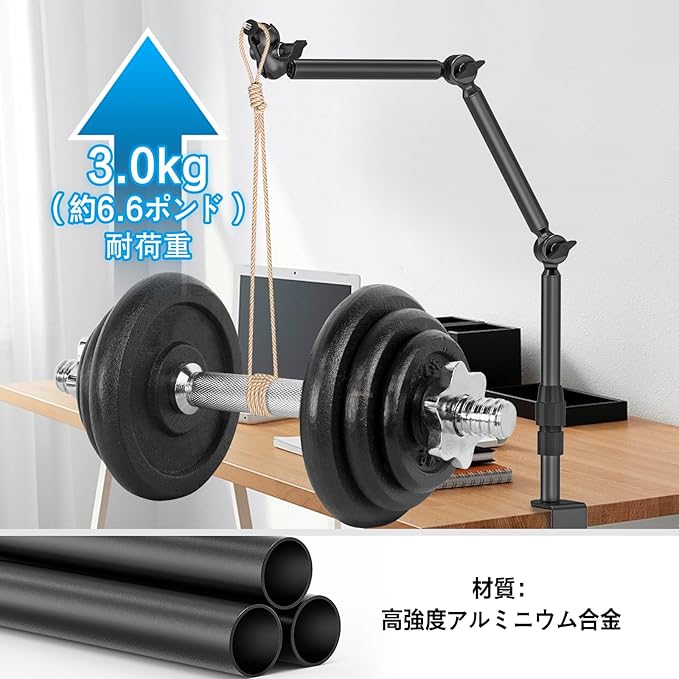 【強化アルミ製で安定性抜群】最大3kgまでしっかり保持。 高品質な強化アルミニウム合金を採用し、軽量でありながら高い耐久性を実現。水平方向で最大3kg(約6.6ポンド)の機材を安定保持。独自開発のジョイントギア機構により微調整が容易で、撮影時の揺れを最小限に抑えます。