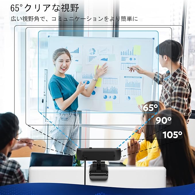 65 最適広角レンズ – 主役はあなた - 広すぎない65 の視野角は、背景よりもあなたにしっかり焦点を合わせ、集中感のある映像を提供。ご自宅でのテレワークやオンライン授業に最適で、余計な背景を映さず、プロフェッショナルな印象を与えます。