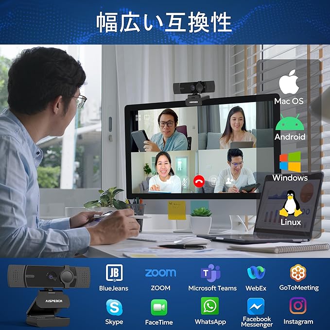 驚きの4K超高精細映像 - AISPEECH 4K ウェブカメラは、1200万画素センサーを搭載し、息をのむほど鮮明な映像を実現。4K/30FPS、1080P/60FPSの複数モードに対応し、ビジネス会議からゲーム配信、YouTube動画制作まで幅広く活躍します。まるで同じ空間にいるかのような臨場感をお届けします。