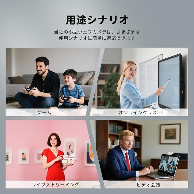 【ゲーミング用QHD 2Kウェブカメラ】GM500 2Kウェブカメラは、2K CMOSセンサーと500万画素を搭載し、高解像度の鮮明な画像と2K/30fpsの滑らかな動画を出力できます。様々なゲーム機に対応し、三脚も付属しているため、ゲームをしながらのビデオ通話やライブストリーミングに最適です。