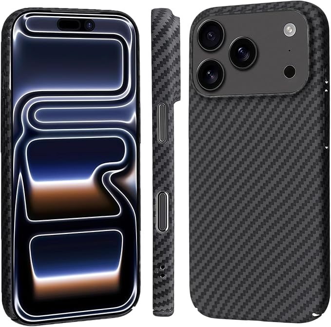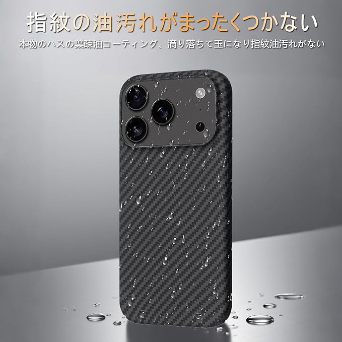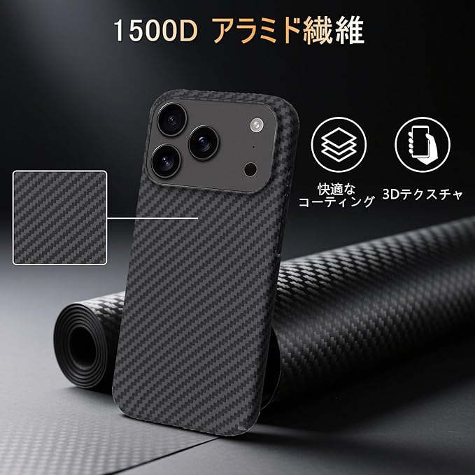 【 Antimam】iPhone 17 PRO MAX 用 ケース アラミド繊維製 極薄&超軽量 カーボン風 アイフォン17プロ マックス スマホカバー 指紋防止 全面保護カバー iPhone17promax (ブラックファイバー)