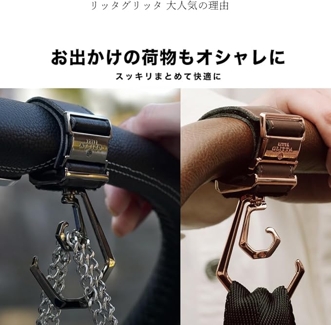 360 回転する大、小のフックは、どの角度からでもかけることができ、使いやすく快適にご利用頂けます。