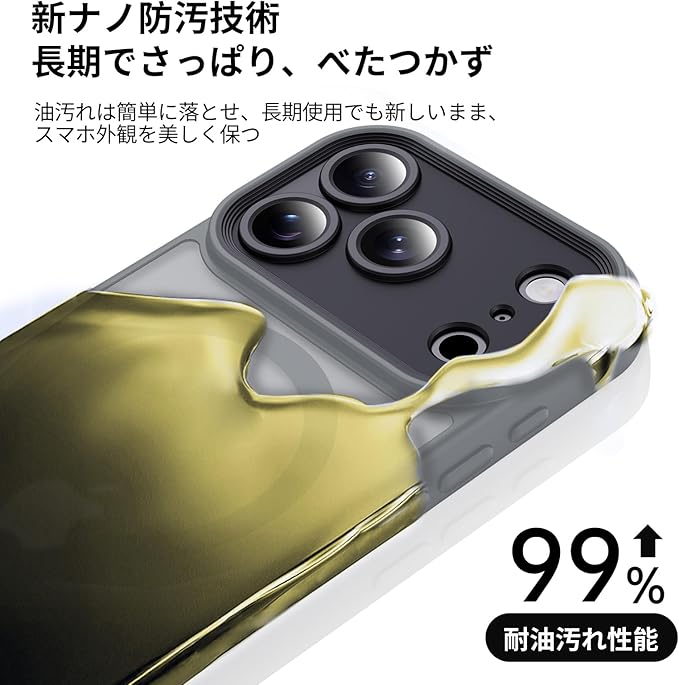 Aunote iPhone 17 Pro Max ケース 精密カメラ保護 MagSafe対応 薄型 軽量 米軍MIL規格 耐衝撃 黄変防止 耐久性 スマホケース いphone17promax ケース カバー グレー
