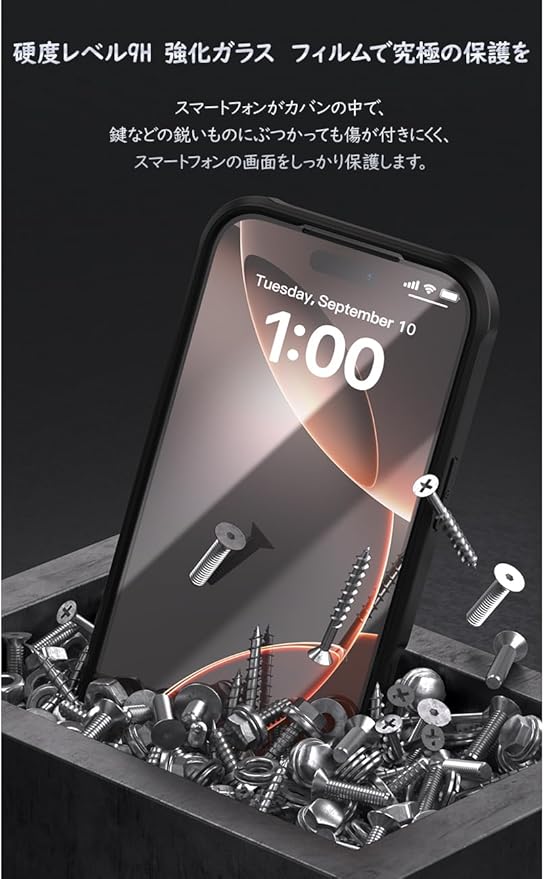【精選した材質】前面9H強化ガラス+背面透過率99.9%PC素材はスマートフォンを保護し、タッチ感度に影響しません. 金属やマグネットを使用しない高弾性TPUにはスマートフォンの通話信号を全然影響しません。
