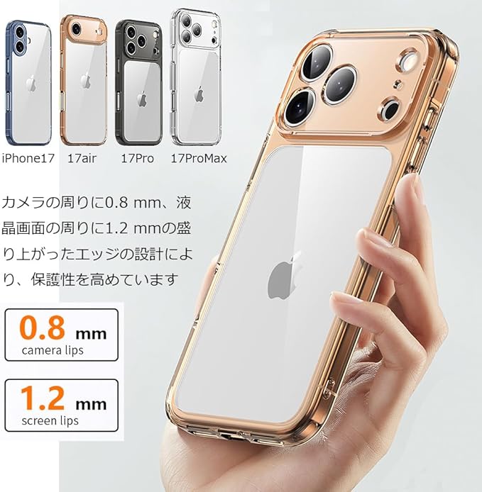 【薄型・軽量 クリスタルクリア】 For iPhone17 ProMax ケース カメラレンズ保護 衝撃吸收 すり傷防止 黄変防止 アイフォン17 プロマックス用カバー スマホケース おまけ強化ガラスフィルム付き cs129a (i17promax, クリア)