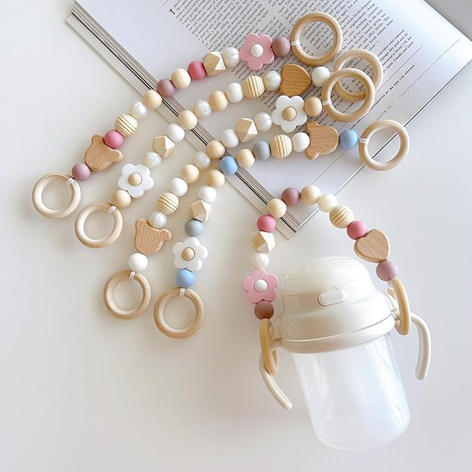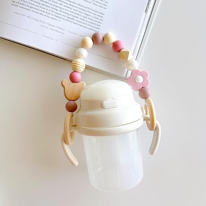 Lulu & Fleur(ルルフルー)お花のマグホルダー マグストラップ ベビーマグ くま ハート 落下防止 紛失防止 出産祝い おでかけグッズ ベビーカー ベビーグッズ (ピンク くま)