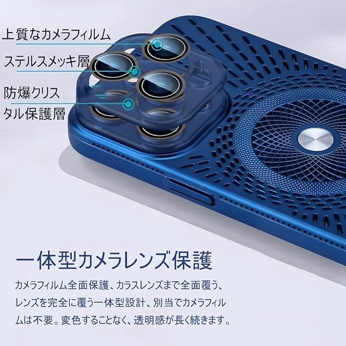 iPhone 17 Pro Max 用 ケース 冷却放熱 スマホケース 薄型軽量 レンズを完全に覆う一体型設計 Magsafe対応 アイフォン 17 Pro Max ケース 6.9インチ (iPhone17ProMax ネイビー) LXW-17ProMax-lan