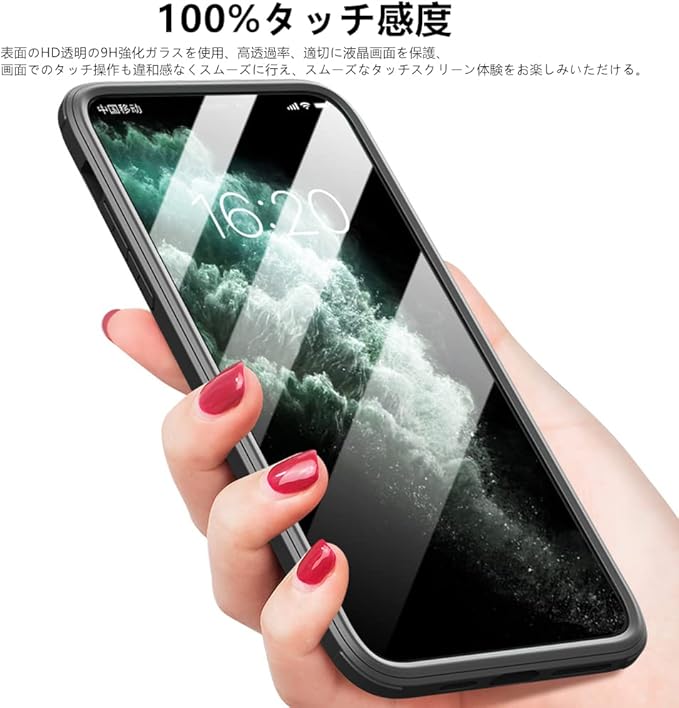 【100%画面感度】表面9H強化ガラスは、高透過率、適切に液晶画面を保護します。画面上の操作も違和感なくスムーズに行え、スムーズなタッチ操作体験をお楽しみいただけます。表面、裹面とも、二重構造の透明素材を使用されています。iPhone本体の自然な外観を維持する元のデザインも綺麗に見られます。(ご注意:他のスクリーン保護フィルムと同時に使用しないでください。)