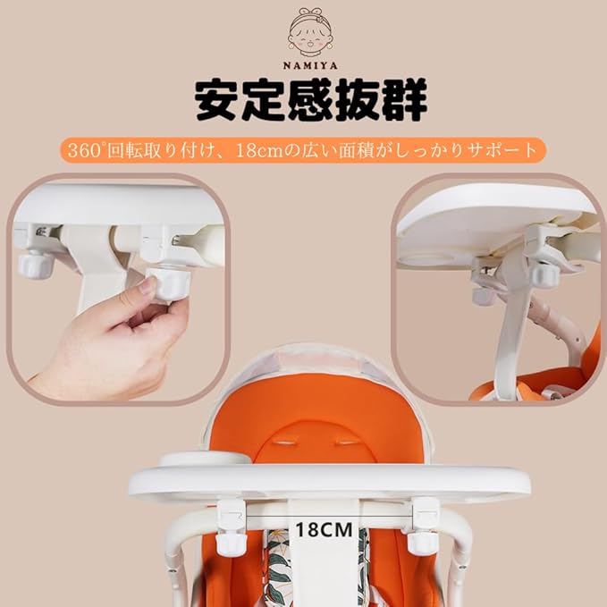 取り外し可能な食事トレイ: 食事トレイは簡単に取り外し可能。お手入れが簡単で、清潔に保ちやすい。