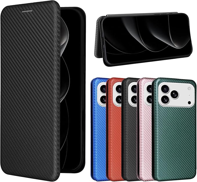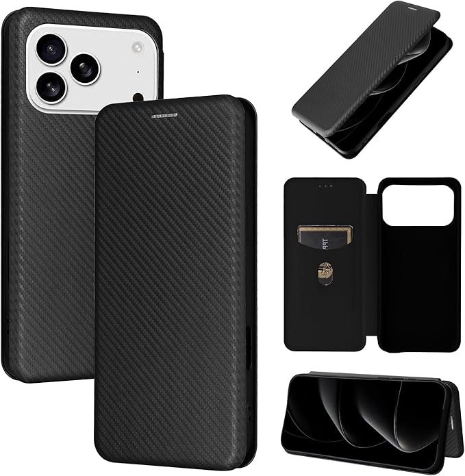 Pelanty for iPhone 17 Pro Max ケース手帳型 炭素繊維調 for iPhone17 Pro Max 携帯カバー 軽量薄型 財布型 カード収納 アップル アイフォン17プロ Max スマホケース マグネット ストラップ付き 耐衝撃 全面保護-ブラック