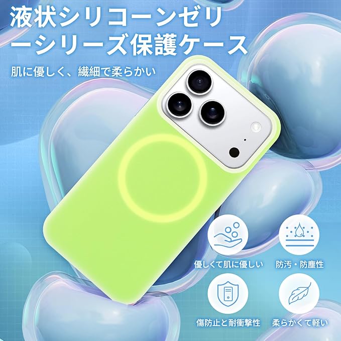 iPhone 17 Pro Max 用の ケース MagSafe対応 シリコン 耐衝撃 【ジェリータッチシリーズ】 いphone 17ProMax スマホケース 5層構造 さらさら手触り 衝撃吸収 指紋防止 あいふおん 17ProMax カバー 超防汚性 滑り止め ワイヤレス充電対応 超軽量 薄型 オシャレ,グリーン