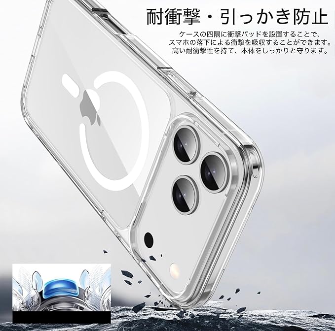 【MagSafe対応】iPhone 17 Pro / 17 Pro Max 用 耐衝撃 薄型 マグネット式 クリアケース|透明カバー 傷防止 男女兼用 スリムデザイン スマホケース (クリア, iphone 17 pro)
