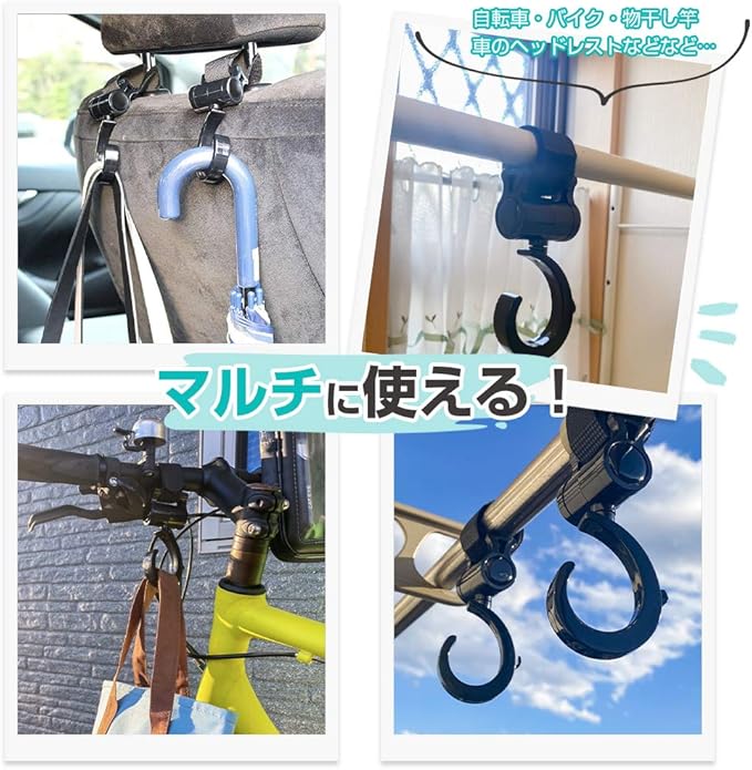 【マルチに活用!セットでお得!】本製品は、ベビーカー・自転車・バイク・車のヘッドレスト・物干し竿・キッチン回り・パイプ家具などマルチに使用可能です。万能グッズなので、プレゼント用にもおすすめです。