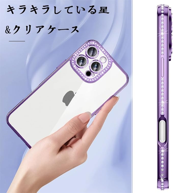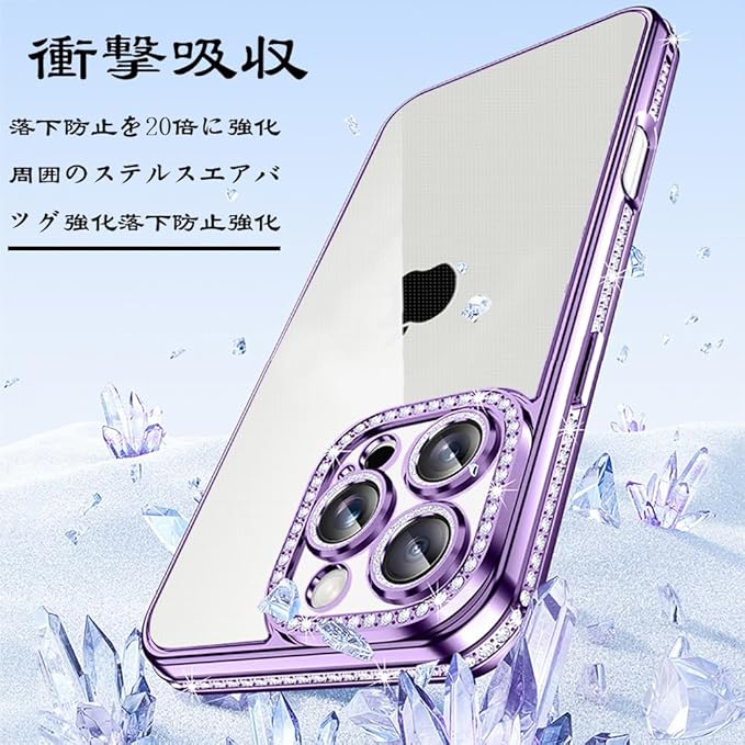 【ラグジュアリーなキラキラカバー】サイドのバンパーにはラインストーンが並び、正面から見ても、裏面から見ても高級感のあるデザイン。キラキラしている可愛いドリルが施されているので、スマホをファッションアイテムに変身させます。品の良いきらきらする感なのでどなたでもお使いいただけます。