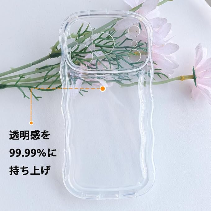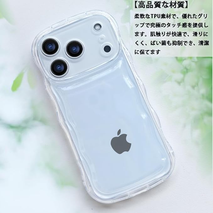 スマホケース 対応 iPhone17 Pro Max ケース クリア 透明 可愛い おしゃれ 耐衝撃 ソフト tpu ウェーブ 波状エッジ ストラップ穴 軽量 薄型 対応 アイフォン17 Pro Max携帯カバー