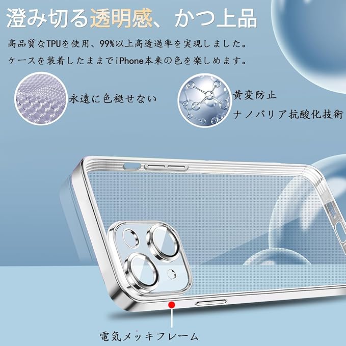 iPhone 17 Pro Max 用 ケース クリア メッキ加工 レンズ保護 TPU ソフトケース 薄くて軽い 人気 耐衝撃 黄変防止 携帯カバー アイフォン 17 Pro Max 用 クリアケース (iPhone 17 Pro Max用,シルバー)