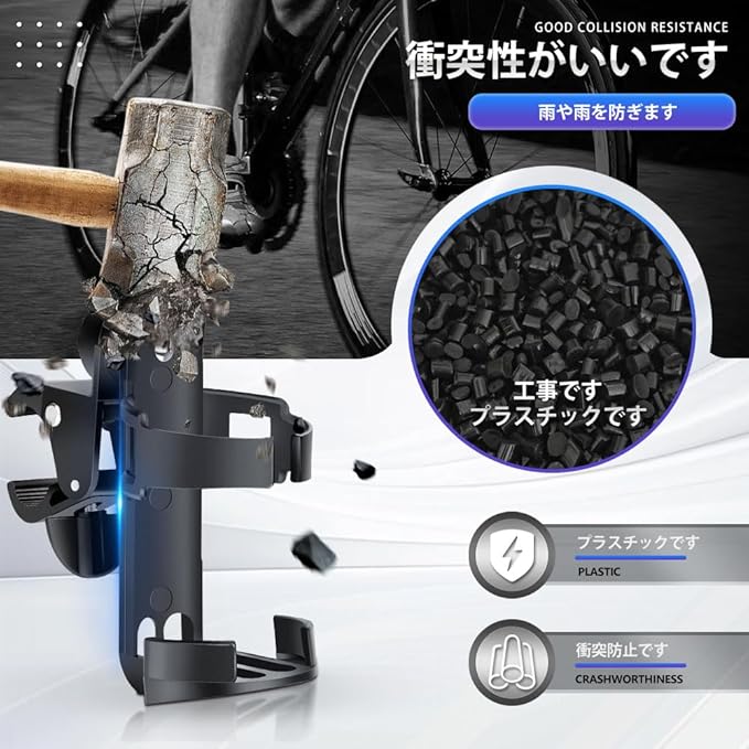 ドリンクホルダー カップホルダー 自転車カップホルダー 自転車 ボトルケージ ボトルホルダー 自転車用ボトルホルダー 簡単取付 360度回転 超軽量 サイズ調整可能 ウンテンバイク ロードバイク クロスバイクに最適 ベビーカーにも 黒