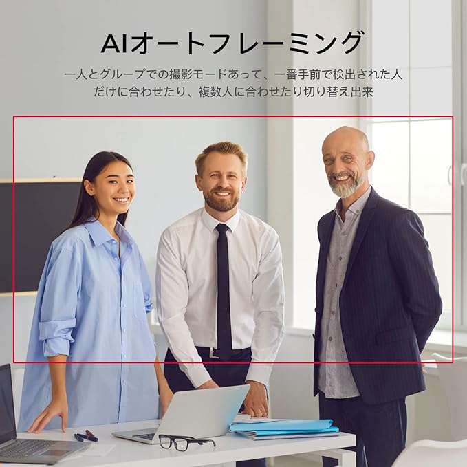 【オートフレーミング】AI技術を利用し、使用シーンに合わせてビデオ画像の自動調整を実現。被写体の位置をリアルタイムで計算し、常に画面の中心部に収まります。ノイズキャンセリング対応の無指向性マイクを2個内蔵し、周囲の雑音を低減し、クリアな音質で会話できます(集音範囲は最大3メートル)。リモート会議、録画、在宅授業などの様々な場面で活躍します。