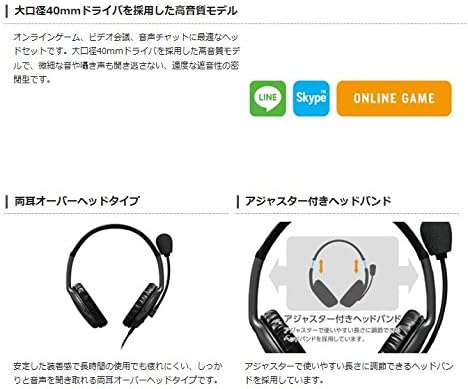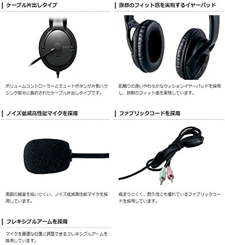 エレコム ヘッドセット マイク 両耳 オーバーヘッド 片出しケーブル 1.8m HS-HP28BK