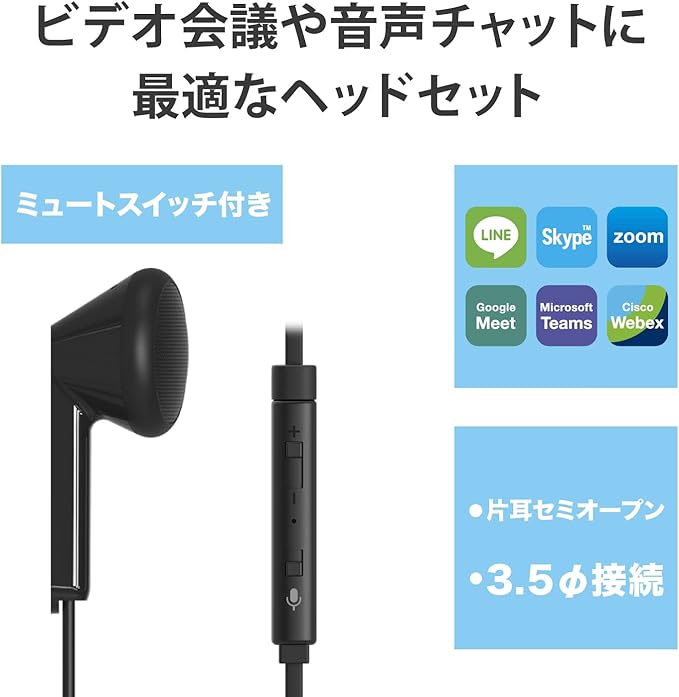 耳を圧迫しない装着感のモノラル(左耳用)セミオープンタイプです。