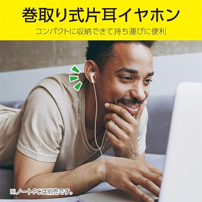コンパクトに収納できて持ち運びに便利。手元コントローラーで操作可能なUSBタイプの巻取り式片耳イヤホン