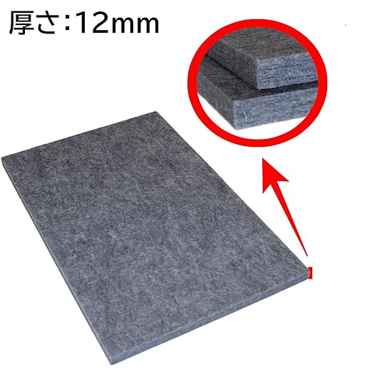 フェルトボードはレザークラフト作業時の防音・防振のためにお使いいただけます。この商品は、従来品よりより厚みがある厚さ12mmの極厚タイプです。