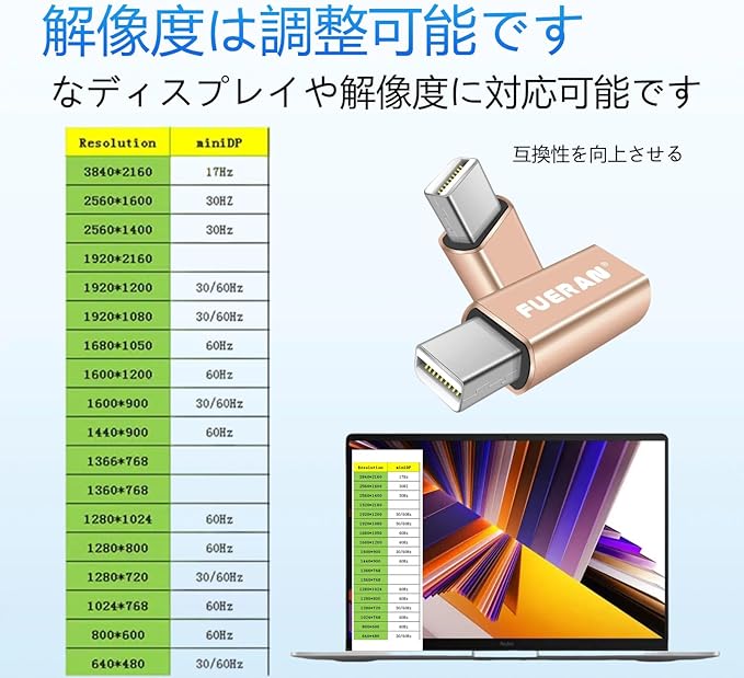 Mini DP supports different resolutions from 800 600 up to 2560x1600@60Hz 3pack