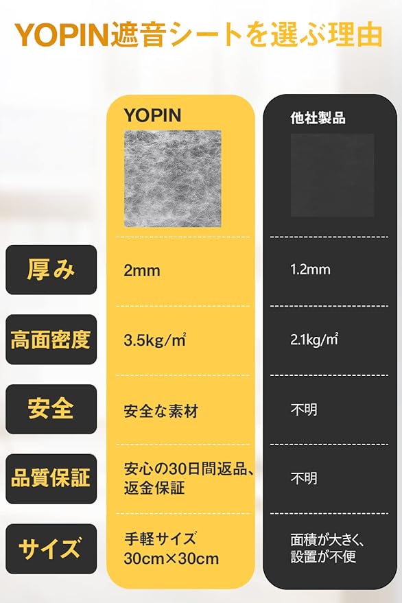 YOPIN 遮音シート 厚さ2mm 面密度 約3.5kg/㎡ 手軽サイズ 軽量 軟質 防音シート 防音対策 室内 ピアノ キーボード 防音 防振用品 消音 騒音 縦30cm 横30cm 防音材 (2.16㎡(24枚))