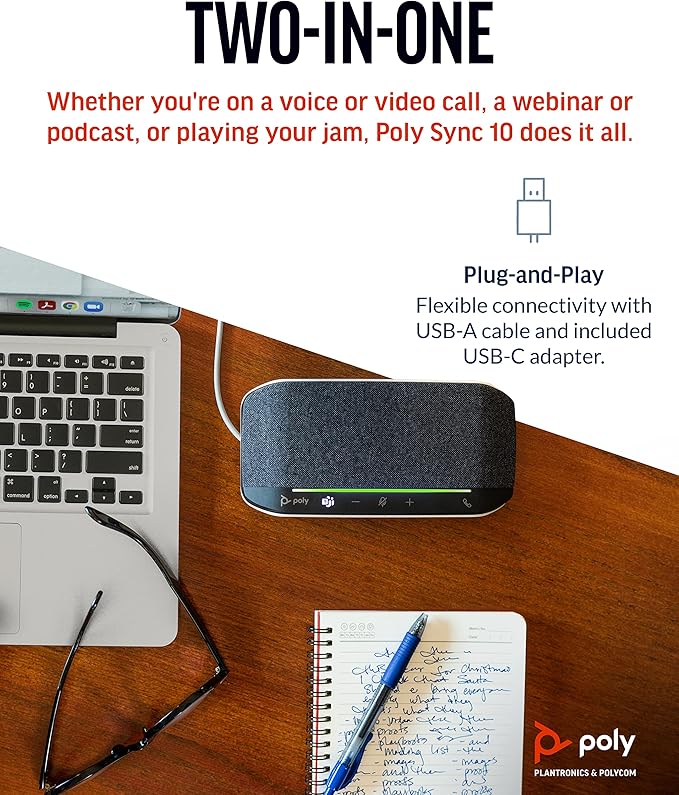 優れた操作性を誇るPoly Sync 10 USB スピーカーフォンは、ビジネスユースにもパーソナルユースにも最適な、高品質なサウンドを提供します。