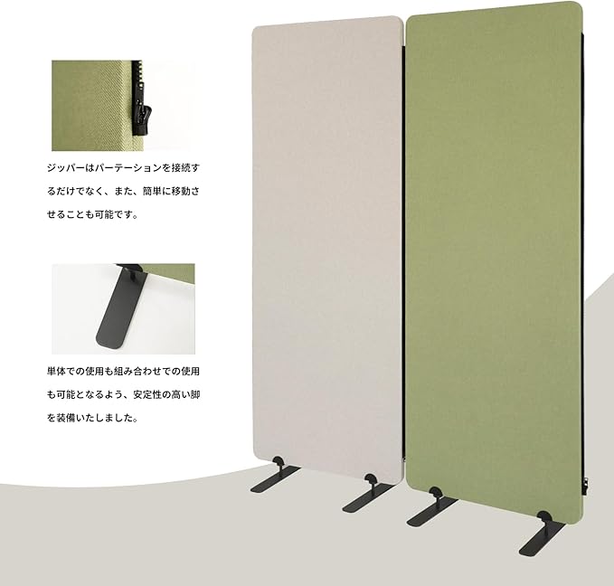吸音パーテーション 高さ160cm幅60cm モジュール式 ファスナー連結式 間仕切り 吸音 遮音 防音 1枚から グリーン