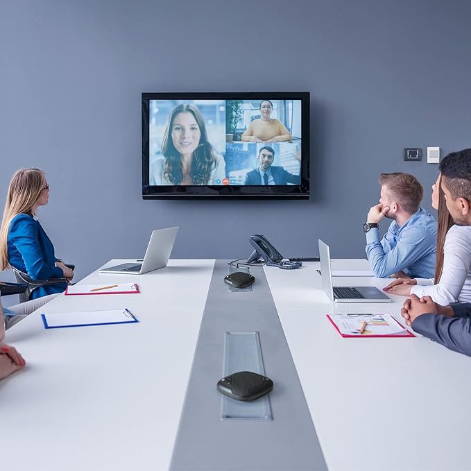 ※2台のスピーカーフォンから声を拾い、音を出すことができるので広い会議室での使用に最適です。