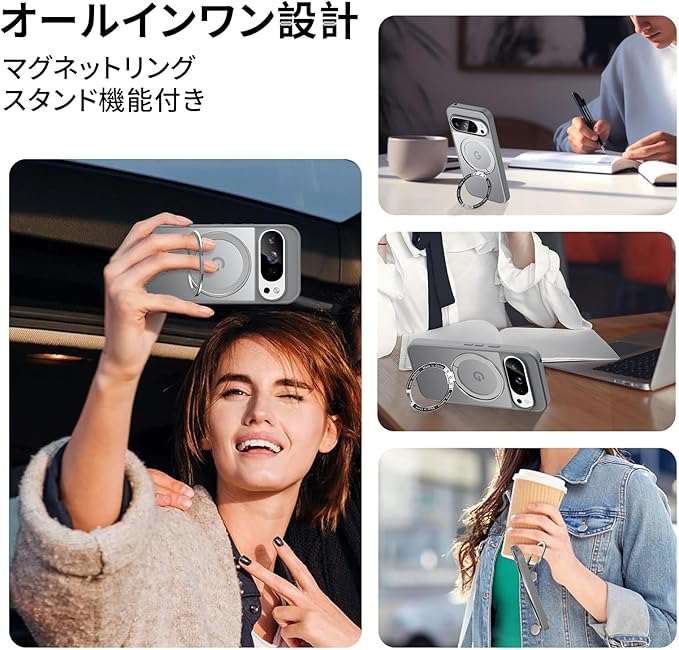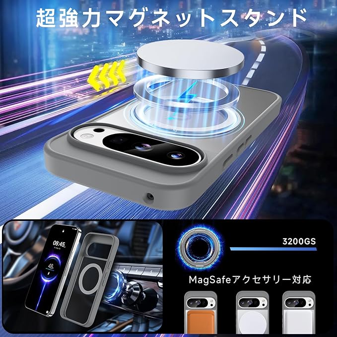 【米軍MIL規格・Magsafe対応】Google Pixel 10 / 10 Pro 用 ケース MagSafe対応 リング 360 回転スタンド機能 縦横両対応 半透明 黄ばみ防止 ワイヤレス充電 レンズ保護 耐衝撃 携帯カバー グーグルピクセル10/10プロ カバー マグネット搭載 車載ホルダー マグセーフ対応 おしゃれ (グレー)