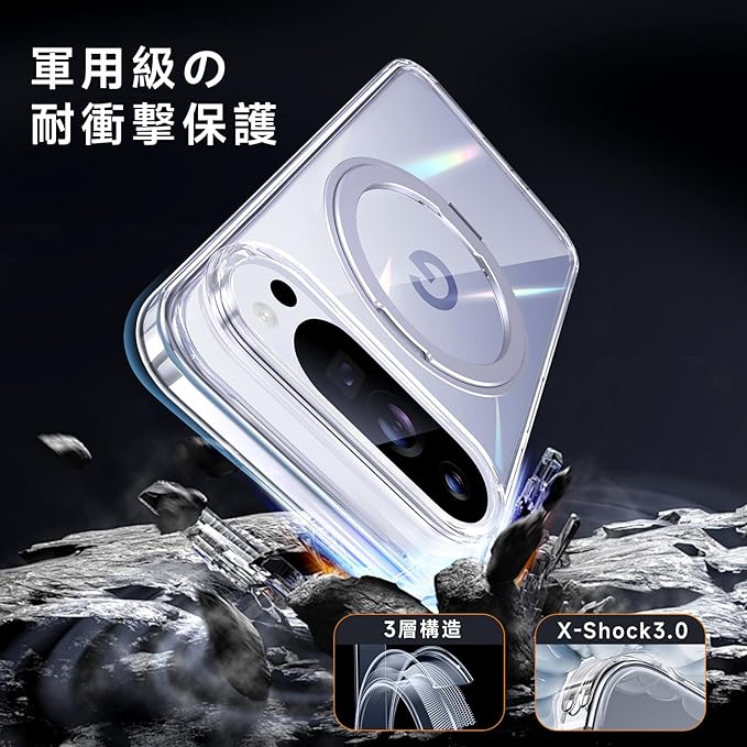 【米軍MIL規格準拠・高耐衝撃性能】米国国防総省の耐衝撃試験「MIL-STD-810G」に準拠し、耐衝撃性能が従来比20倍アップ!スマホの落下時に特に衝撃を受けやすい四隅には、衝撃を分散するクッション構造を採用。また、ケースの側面には柔軟性の高いTPU素材を使用し、耐衝撃性を強化。Google Pixel 10 / 10 Proをしっかりと守ります。