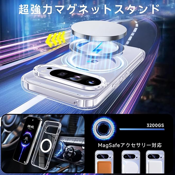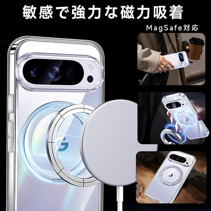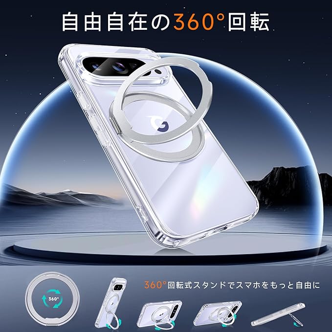 【米軍MIL規格・Magsafe対応】Google Pixel 10 / 10 Pro 用 ケース MagSafe対応 リング 360 回転スタンド機能 縦横両対応 透明 黄ばみ防止 ワイヤレス充電 レンズ保護 耐衝撃 携帯カバー グーグルピクセル10/10プロ カバー マグネット搭載 車載ホルダー マグセーフ対応 おしゃれ (クリア)