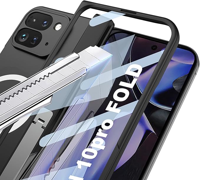 Google Pixel 10 Pro Fold ケース PETフィルム付 ピクセル 10プロフォールド 用 カバー ヒンジ保護 スタンド付き SUGOIDAN スマホケース カメラレンズ保護 薄型 軽量 全面保護 ワイヤレス充電対応 ストラップ穴付き 折りたたみ式 (ブラック)