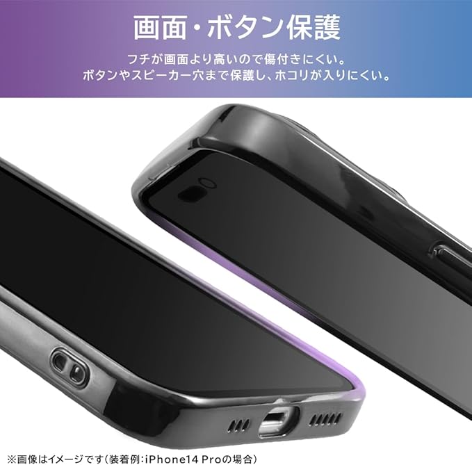 艶のあるメタリックな光沢感が魅力のソフトケース。 全体をTPU素材で仕上げ、やわらかく端末にフィットします。 マイクロドット加工により、密着痕がつきにくく、見た目もすっきり。 カメラ周りまでしっかり保護する精密設計で、毎日の使用に安心をプラス。 アクセサリーの取り付けに便利なストラップホール付き。