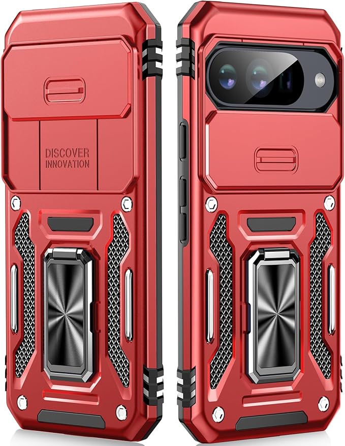 【米軍MIL規格 & スライド式カメラカバー】Pixel 10/10 Pro 用 ケース カメラ保護付【 360 回転 横縦両立・角度自由調整】指紋防止耐衝撃ヘビーデューティ 頑丈ケース 耐久性 SGS認証 Google Pixel 10/10 Pro 用