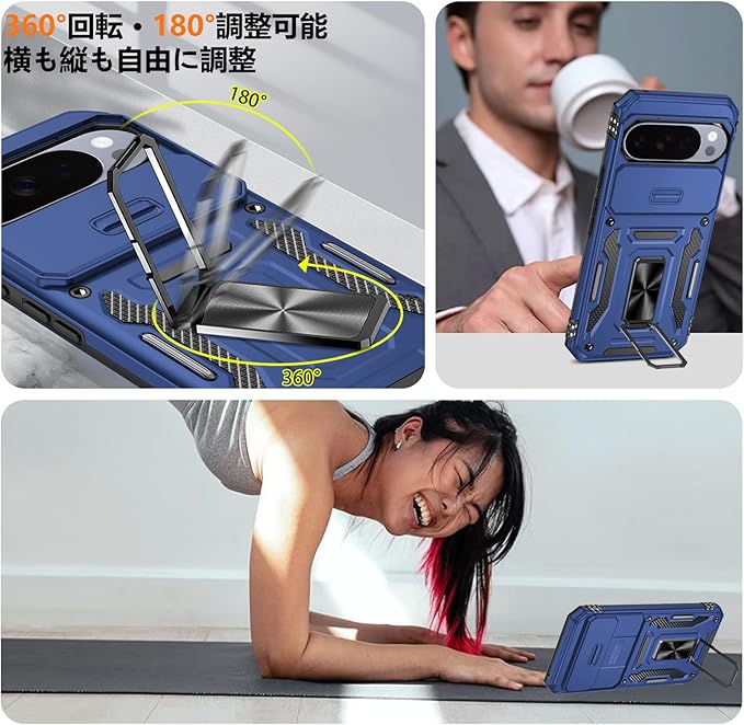 PNEWQNE 対応 Google Pixel 10/10 Pro 用のケース リング付き 衝撃吸収 耐衝撃 スタンド機能 米軍MIL規格 グーグル ピクセル10/10 pro 用のケース 全面保護 360 回転 滑り落ちにくい 人気 おしゃれ 携帯カバー 青 WY100-20