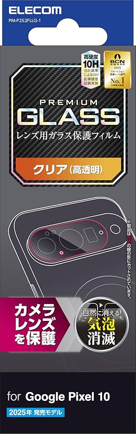 エレコム Google Pixel 10/10 Pro カメラフィルム ガラス レンズ保護 光沢 リアルガラス グレア 指紋防止 硬度10H 割れない 傷がつきにくい 気泡ゼロ 貼り直し可能 自己吸着 PM-P252FLLG-1