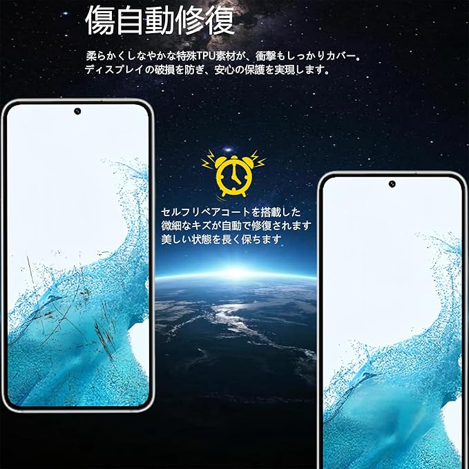 【気泡レス キズ修復】:貼り付けた後、少し気泡を入りマスと、保護フィルムに傷をつかないため補助カード/手でフィルムを押しないでください。24-48時間以内に自然に消えて無くなりますのでご安心ください。周縁部分は指でウオッチ周縁を整理して、フィルムをスクリーンに密着させてください。TPU製フイルム材料は普通のガラスチック製のフィルムより強靭性があり、48時間以内に小さな傷を自動修復し、自然に消えます。